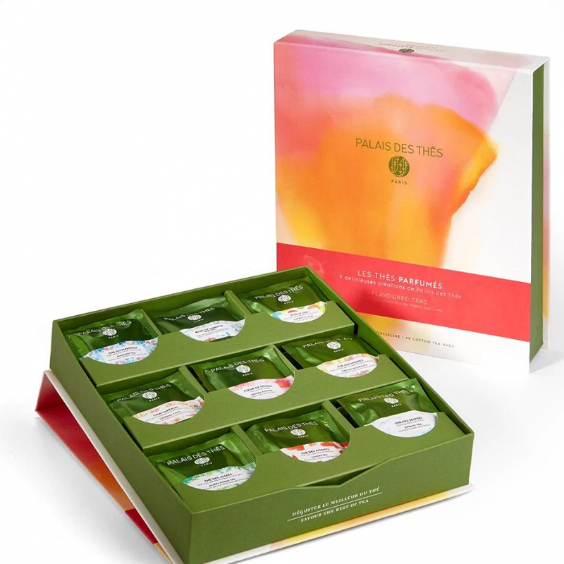 Les créations parfumées historiques de Palais des Thés réunies dans un coffret de 45 mousselines 100% thés parfumés.