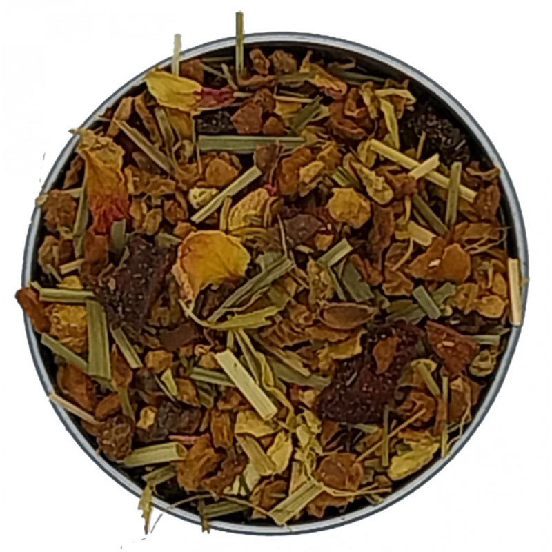DETOX Balinaise est une délicieuse infusion sans théine qui associe les vertus détox et calmantes de la citronnelle et du galanga aux notes gourmandes de mangue et de papaye. Elle libère des parfums évoquant les fleurs de frangipanier et offre un voyage relaxant au cœur de l’île balinaise.