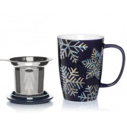En exclusivité pour les fêtes de fin d’année 2025, Palais des Thés dévoile un mug infuseur en porcelaine aux couleurs de l’hiver : des flocons scintillants aux mille éclats dorés parent cet objet aux tons de bleu nuit profond et élégant.